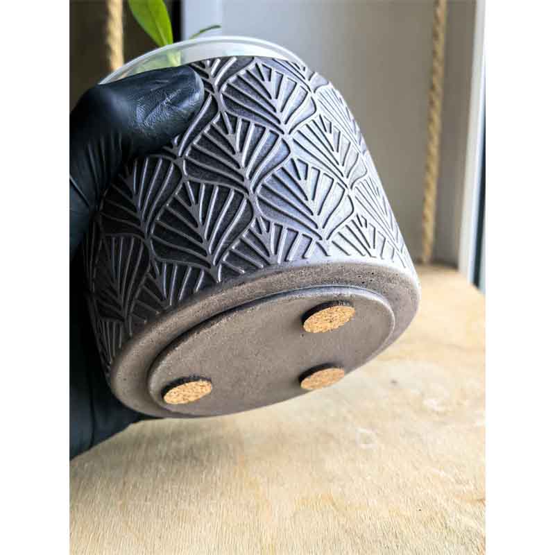 Кашпо хорошо удерживает воду, обработано водоотталкивающим лаком, а пробковые подложки на дне изделия защитят мебель от царапин.