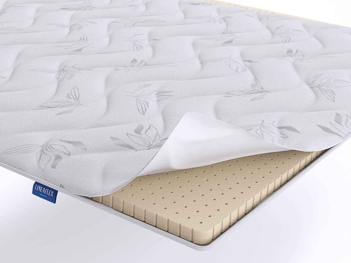 Топпер с наполнением из натурального латекса высотой 3 см. Натуральный латекс производится из сока дерева Гевея. Он является самым мягким и упругим материалом из всех наполнителей и создает наиболее комфортную поверхность для сна. Долговечен, устойчив к деформации, не вызывает аллергии.