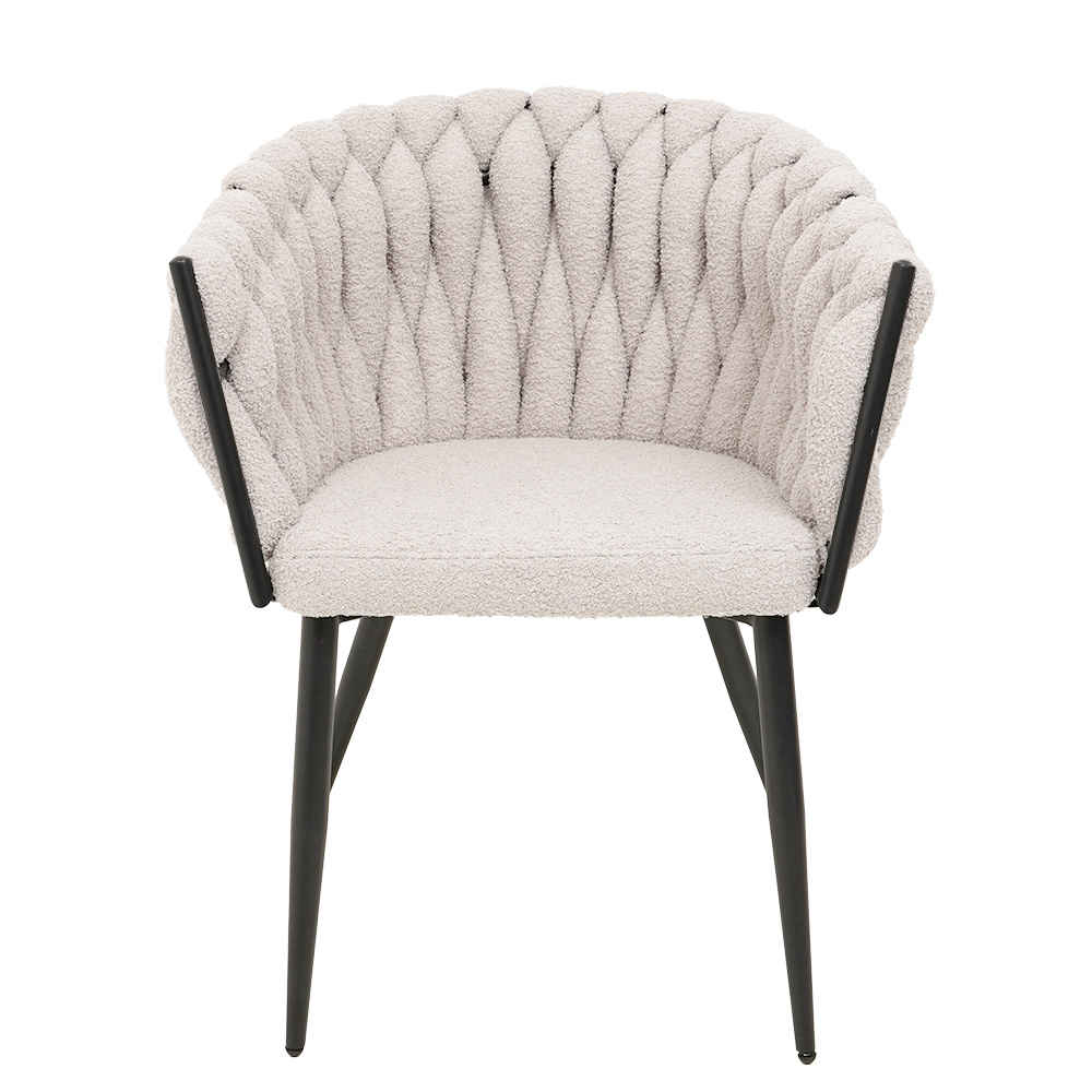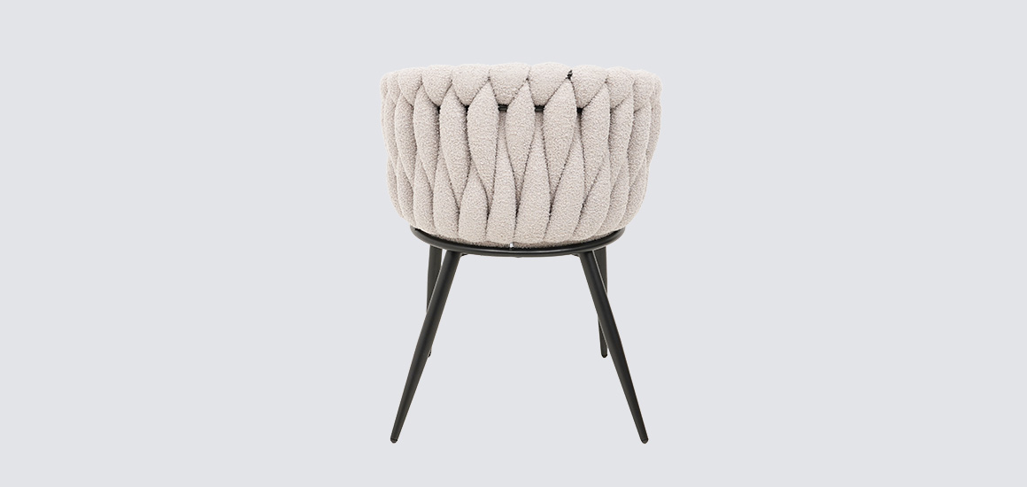 Дизайнерское кресло Джоли отличается замысловатым переплетением ткани в спинке, плавно переходящей в подлокотник.