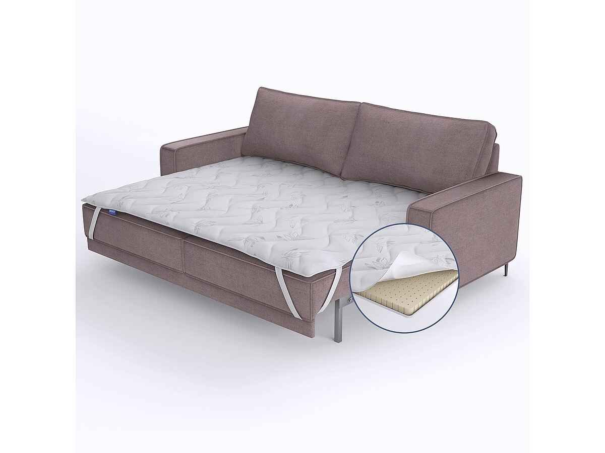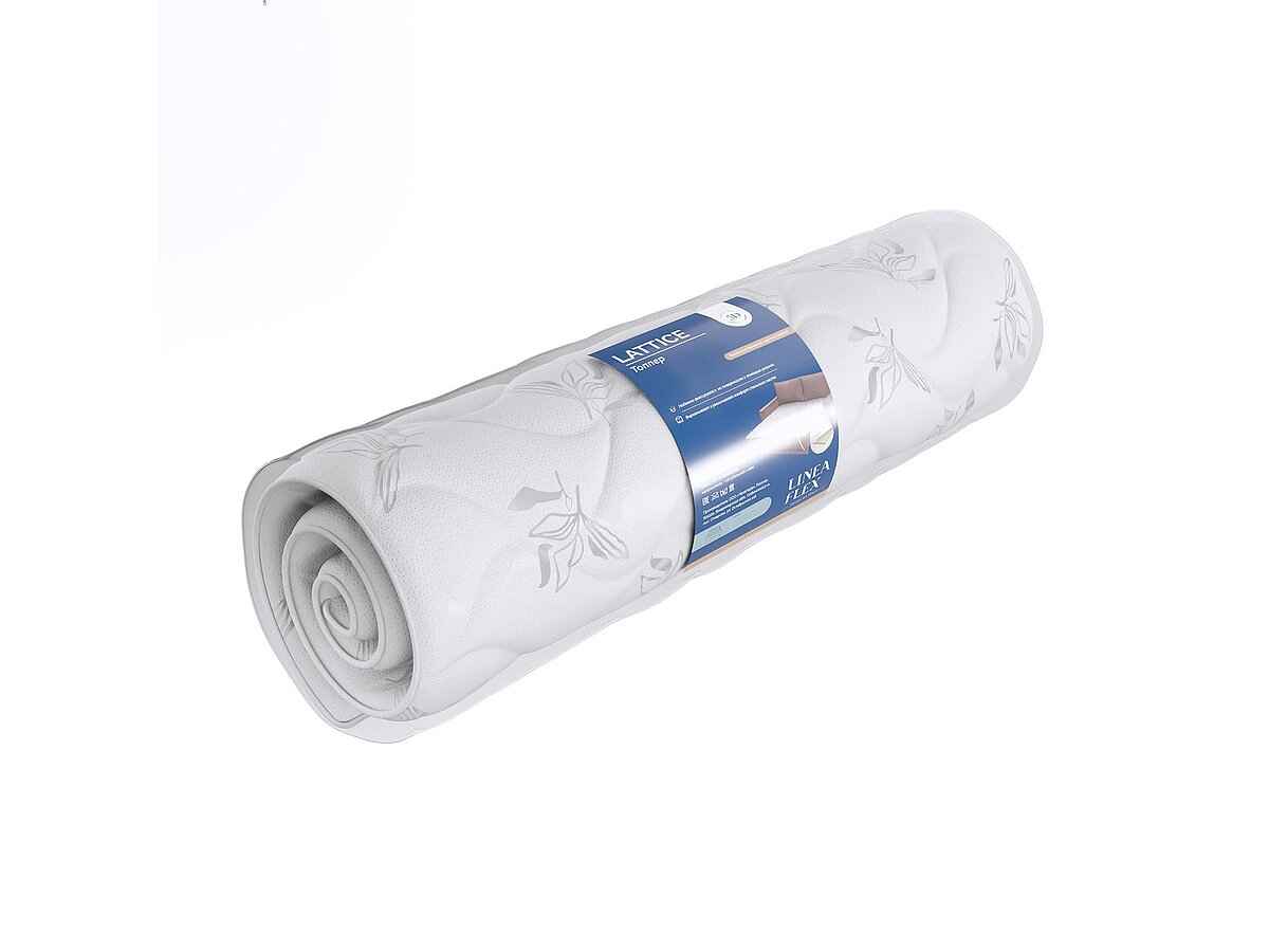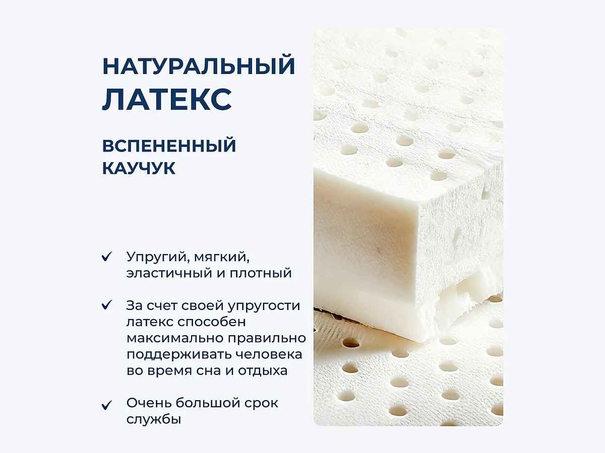 Топпер с наполнением из натурального латекса высотой 3 см. Натуральный латекс производится из сока дерева Гевея. Он является самым мягким и упругим материалом из всех наполнителей и создает наиболее комфортную поверхность для сна. Долговечен, устойчив к деформации, не вызывает аллергии.